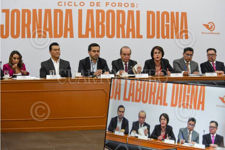 TOLUCA, ESTADO DE MÉXICO, 03MARZO2025.- Diputados federales de Movimiento Ciudadano encabezados por diputada Patricia Mercado Castro, arrancaron con los trabajos del Ciclo de Foros “Jornada Laboral Digna” que busca una iniciativa de reforma para reducir la jornada laboral de 48 a 40 horas, teniendo como sede la legislatura local, durante estos trabajos estuvieron presentes Jorge Álvarez Máynez, coordinador nacional de MC, los diputados locales Juan Zepeda, Ruth Salinas, así como el diputado morenista Maurilio Hernández, líderes sindicales, empresarios, académicos y especialistas, estos foros se llevarán a cabo en otras entidades del país durante las siguientes semanas. FOTO: CRISANTA ESPINOSA AGUILAR /CUARTOSCURO.COM