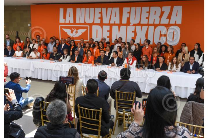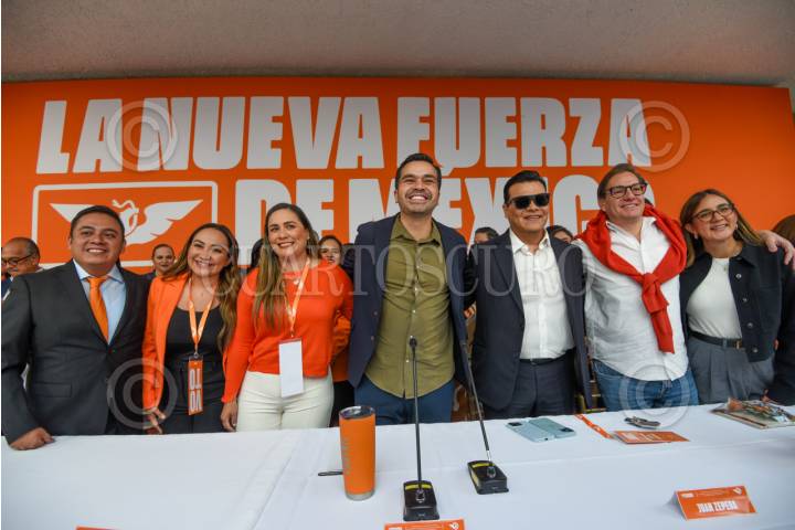 TOLUCA, ESTADO DE MÉDICO, 04JULIO2025.- Jorge Álvarez Máynez, dirigente nacional del Partido Movimiento Ciudadano, encabezó los trabajos de la 7a Asamblea de la Coordinación Nacional de Diputadas y Diputados de Movimiento Ciudadano a las Legislaturas de los Estados; en donde aseguró que el partido sumará todos sus esfuerzos con miras al 2027 para que el Estado de México se pinte de naranja, como Veracruz y Durango, y reiteró el respaldo al diputado local Juan Zepeda para lograr esto. FOTO: CRISANTA ESPINOSA AGUILAR /CUARTOSCURO.COM