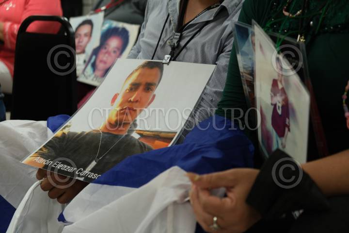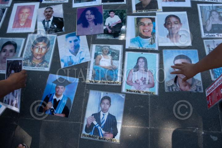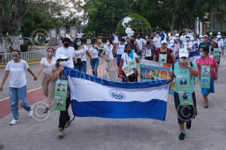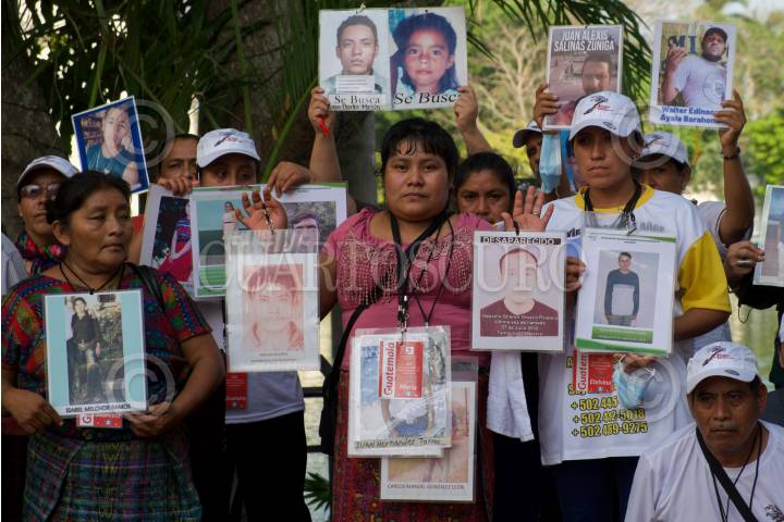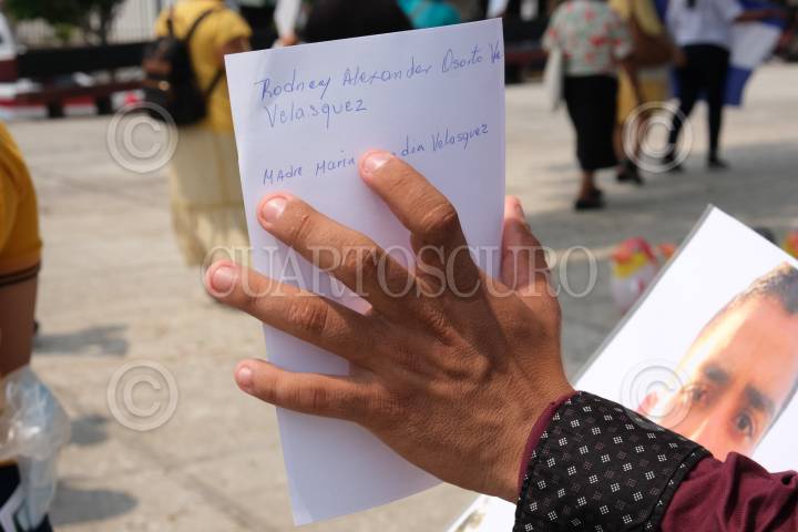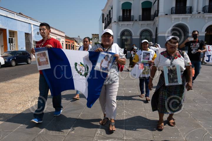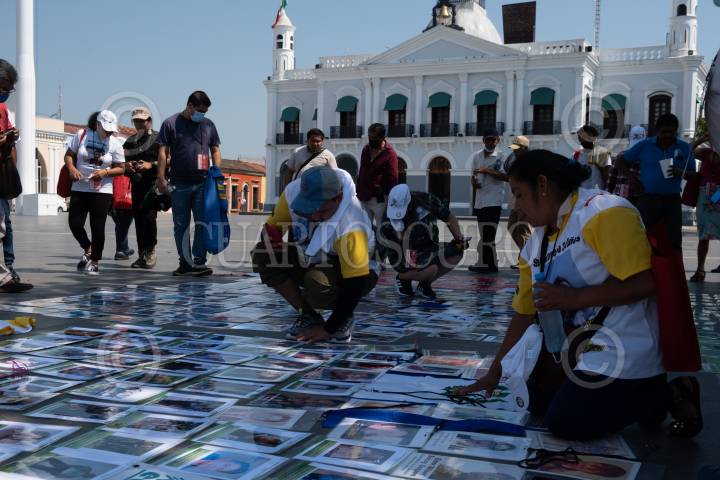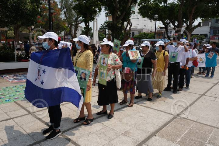 Madres integrantes de la Caravana de Madres Centroamericanas protestaron en la plaza de Armas de Villahermosa, Tabasco, para pedir la aparición con vida de sus hijas, hijos y todos los migrantes desaparecidos en territorio mexicano.