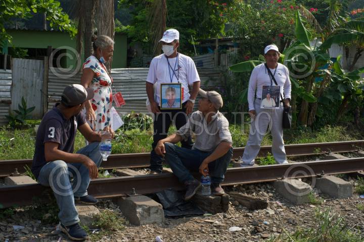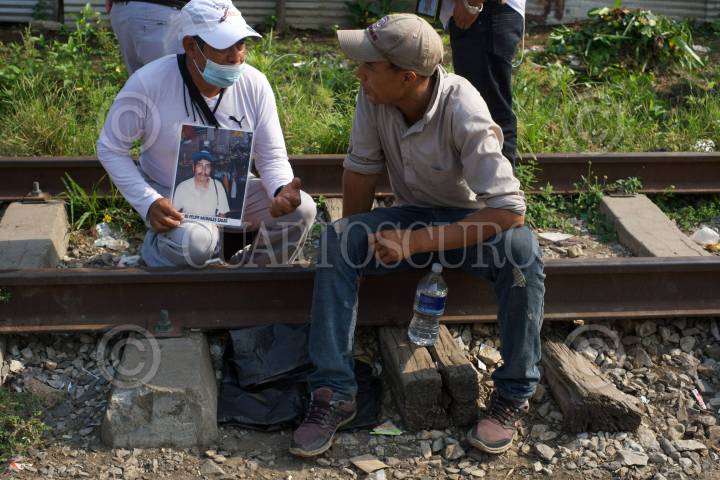 Integrantes de la Caravana de Madres Centroamericanas acudieron a las vías de tren para dialogar con migrantes que esperan subir al tren para indagar el paradero de sus familiares desaparecidos.