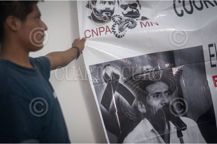 MÉXICO, D.F., 12JUNIO2014.- Integrantes de la Coordinadora Plan de Ayala, Movimiento Nacional, encabezados por Franciscco Jiménez, Alejandro Cruz y Edwin Slim, ofrecieron una conferencia de prensa para condenar el asesinato de su compañero Antonio Esteban Cruz, dirigente regional del Movimiento Independiente, Obrero, Campesino, Urbano y Popular (MIOCUP) en la Sierra Norte de Puebla ocurrido el pasado 4 de junio en el paraje "El Rincón", a orillas del río Apulco, municipio de Cuetzálan, Puebla. Durante la conferencia estuvieron presentes los hijos del fallecido, Rodrigo Esteban Cruz e Isaías Cruz. FOTO: DIEGO SIMÓN SÁNCHEZ /CUARTOSCURO.COM