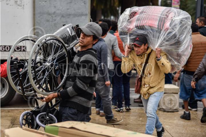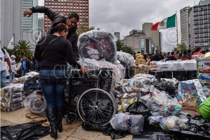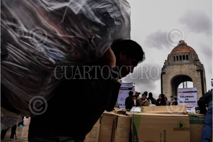 CIUDAD DE MÉXICO, 30SEPTIEMBRE2017.- Jóvenes y miembros del Movimiento Nacional por la Esperanza llevaron a cabo la jornada de las “columnas de solidaridad” para los damnificados del sismo del 19 de septiembre. Brigadas de distintos estados de la républica se dieron cita en el Monumento a la Revolución para distribuir víveres, ropa, y medicinas a los distintos lugares afectados. FOTO: MARIO JASSO /CUARTOSCURO.COM