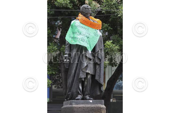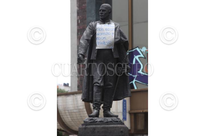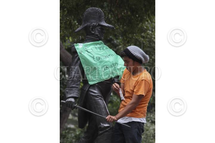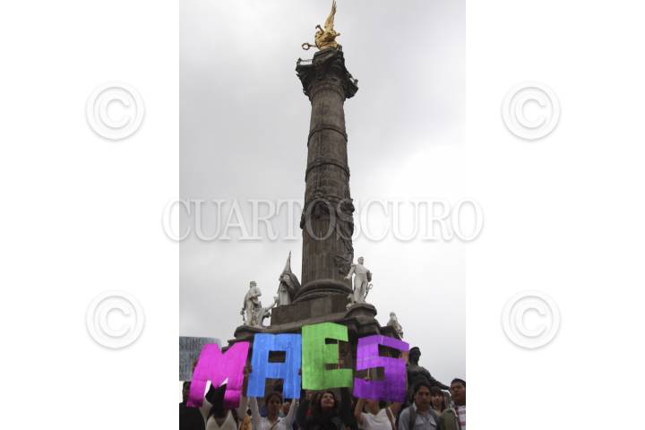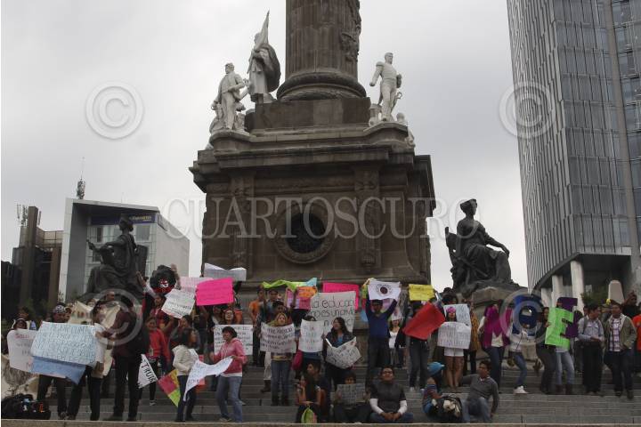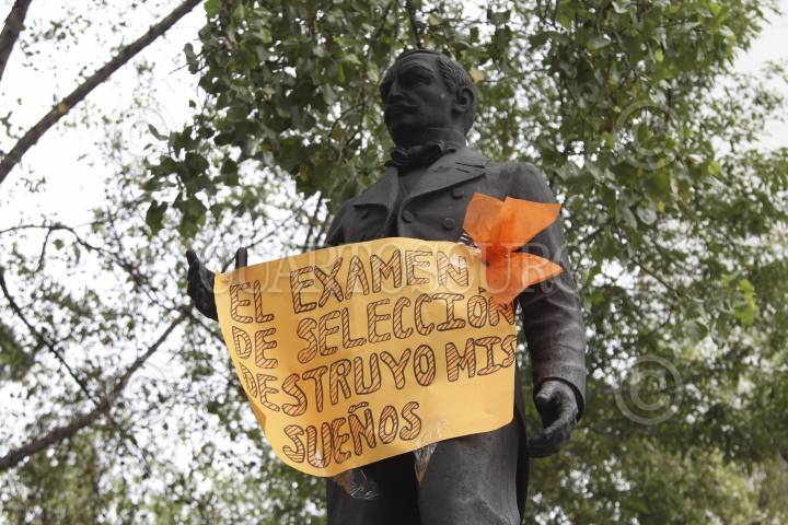 MÉXICO, D.F., 12AGOSTO2012.- Integrantes del Movimiento de Aspirantes Excluidos de la Educación Superior (MAES) se manifestaron por paseo de la Reforma en el Paseo Ciclista colocando pancartas de las estatuas y gritando consignas donde piden una oportunidad de estudio en la educación superior. FOTO: ENRIQUE ORDÓÑEZ /CUARTOSCURO.COM