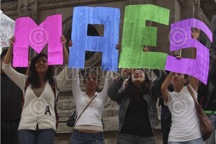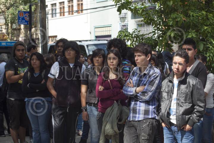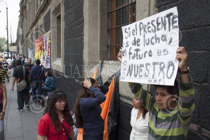 MÉXICO, D.F., 11MAYO2012.- Jóvenes excluidos de las universidades públicas se manifestaron en la explanada de la rectoría de la UNAM. Los estudiantes provenientes principalmente de los colegios de Bachilleres exigieron un lugar en algunas de la instituciones de educación superior como la UNAM, IPN o la UAM. Los jóvenes entregaron un escrito dirigido al Rector, José Narro, que incluye los resultados de una encuesta a 14 mil 226 estudiantes de bachillerato, de los cuales 13 mil 473 afirman que quieren seguir estudiando y un 56 por ciento de ellos desea ingresar a la UNAM. FOTO: MOISÉS PABLO /CUARTOSCURO.COM