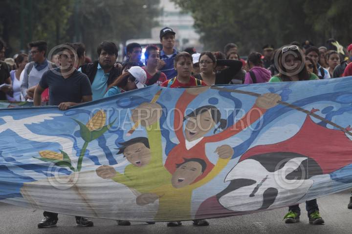 MÉXICO, D.F., 03AGOSTO2013.- Jóvenes integrantes del Movimiento de Aspirantes Excluidos de la Educación Superior marcharon del metro Lindavista a la Unidad Zacatenco del Instituto Politécnico Nacional en donde realizaron un mitin y brigadeo para informar a los estudiantes que acudían a este modulo de estudios para realizar un segundo examen de ingreso al IPN. FOTO: MOISÉS PABLO /CUARTOSCURO.COM