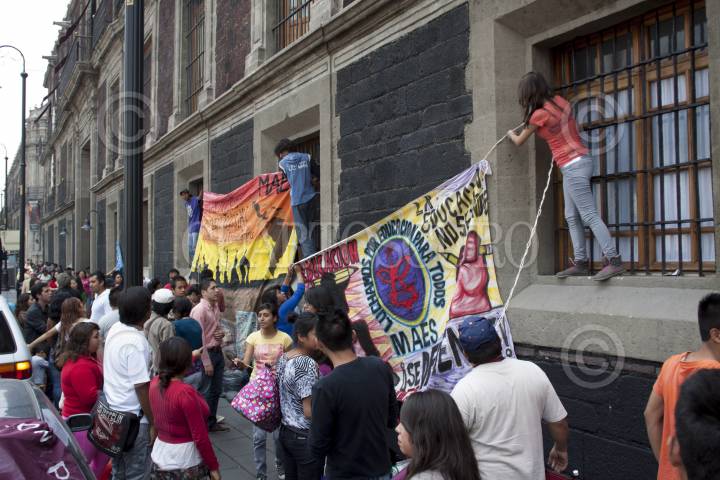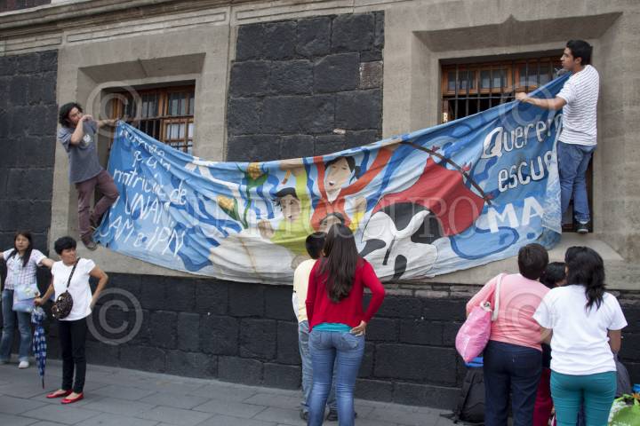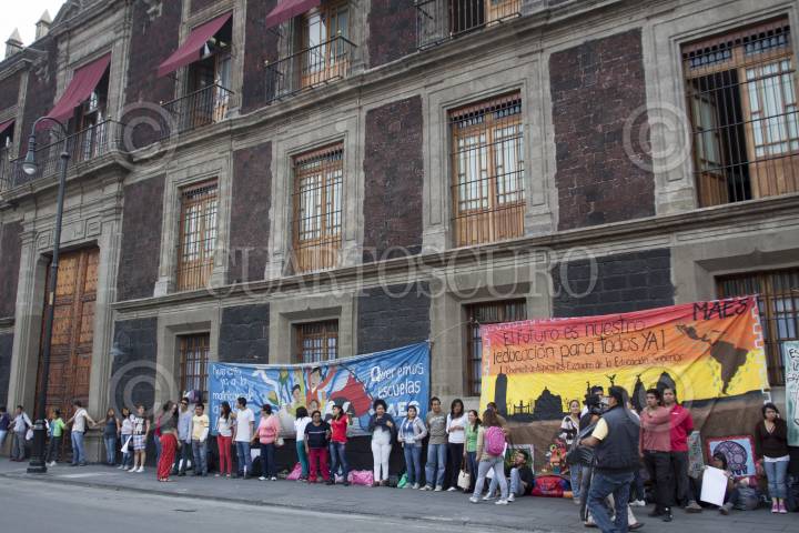 MÉXICO, D.F., 08AGOSTO2013.- Jóvenes del Movimiento de Aspirantes Excluidos de la Educación Superior aplicaron un cerco simbólico en las instalaciones de la Secretaría de Educación de Pública como una forma de protesta dentro de sus exigencia de que las autoridades educativas les proporcionen un lugar en alguna institución como la UNAM, IPN o UAM. Al mismo tiempo se instaló una mesa de dialogo entre el movimiento, autoridades de la SEP y de las universidades, para poder buscar un camino en esta problemática que cada período de nuevo ingreso se agudiza por la falta de espacios ante la alta demanda educativa a nivel nacional. FOTO: MOISÉS PABLO /CUARTOSCURO.COM