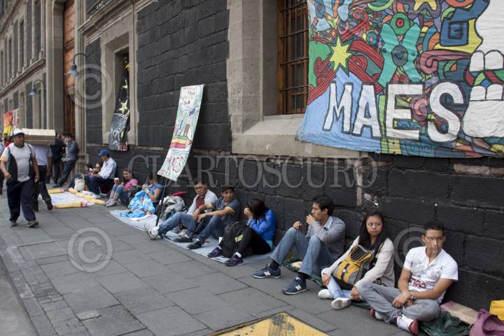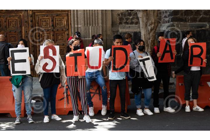 Jóvenes del Movimiento de Aspirantes Excluidos de la Educación Superior (MAES) se manifestaron en la SEP, para exigir un lugar en una escuela de su preferencia para poder continuar con sus estudios.