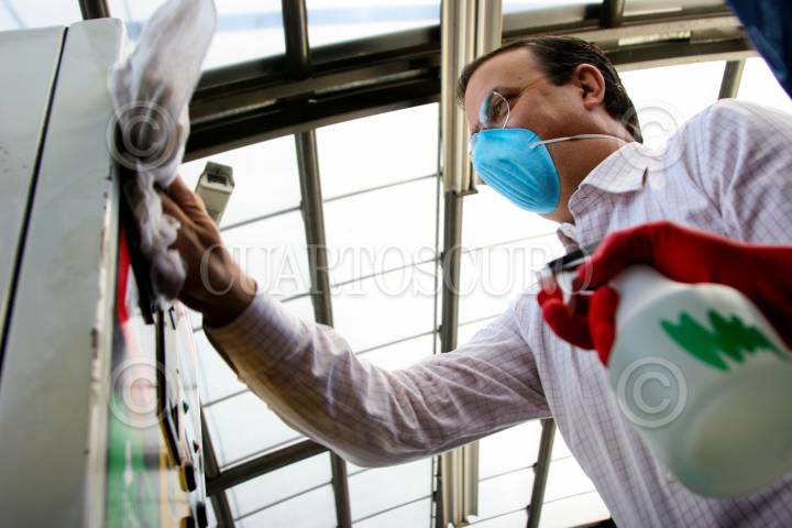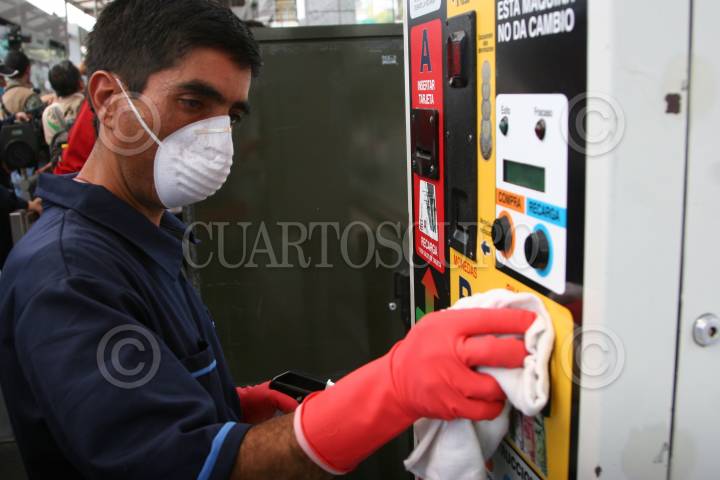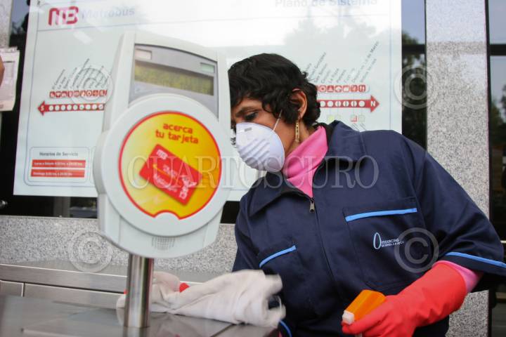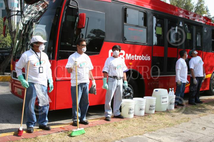 MÉXICO, D.F., 05MAYO2009.- El gobierno del Distrito Federal comenzó la limpieza profunda del Metrobús, esta limpieza se realizara cada 2 horas, se hará desinfección de pasamanos en las 221 unidades del Metrobús. FOTO: RICARDO CASTELAN/CUARTOSCURO.COM