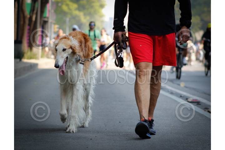 CIUDAD DE MÉXICO, 10NOVIEMBRE2024.- Un hombre en compañía de su mascota pasear sobre Avenida de la Reforma, durante el Paseo Dominical "Muévete en bici". FOTO: MAGDALENA MONTIEL VELÁZQUEZ/CUARTOSCURO.COM