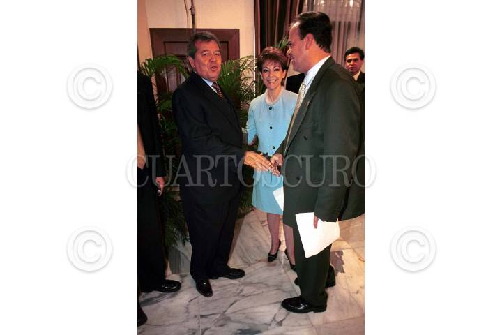 Enrique Jackson, presidente de la Mesa Directiva del Senado (al centro) recibio en la Cámara de Diputados a Walter Schwimmer, secretario general del Consejo de Europa (der.), tambien estuvo presente Porfirio Munóz Ledo, embajador ante la Comunidad Europea (izq.) . FOTO:Oswaldo Ramírez/CUARTOSCURO.COM