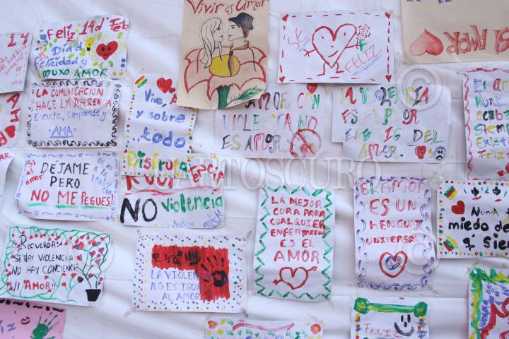 MÉXICO, D.F., 14FEBRERO2009.- En la plancha del zócalo capitalino se desarrollo la feria Amor es sin violencia "bésame mucho" para romper el récord Guiness de mayor numero de besos, la feria contó con diversas actividades como pintura, y registro civil, donde las parejas podían casarse de manera ficticia y a cambio recibian preservativos. FOTO:SÁSHENKA GUTIÉRREZ/CUARTOSCURO.COM
