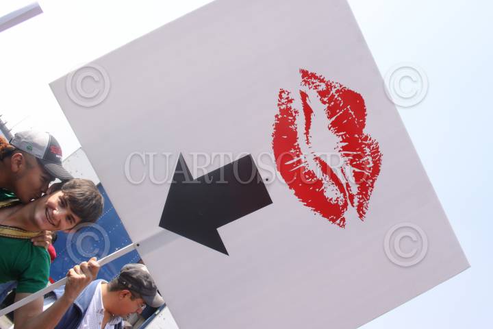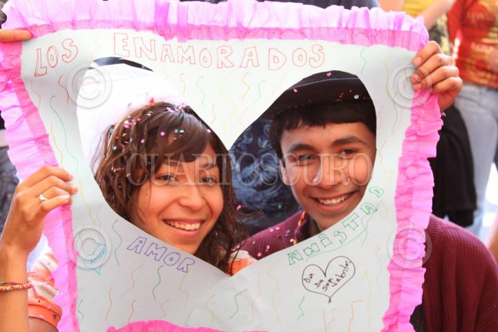 MÉXICO, D.F., 14FEBRERO2009.- En la plancha del zócalo capitalino se desarrollo la feria Amor es sin violencia "bésame mucho" para romper el récord Guiness de mayor numero de besos, algunos de los asistentes regalaban besos. FOTO:SÁSHENKA GUTIÉRREZ/CUARTOSCURO.COM