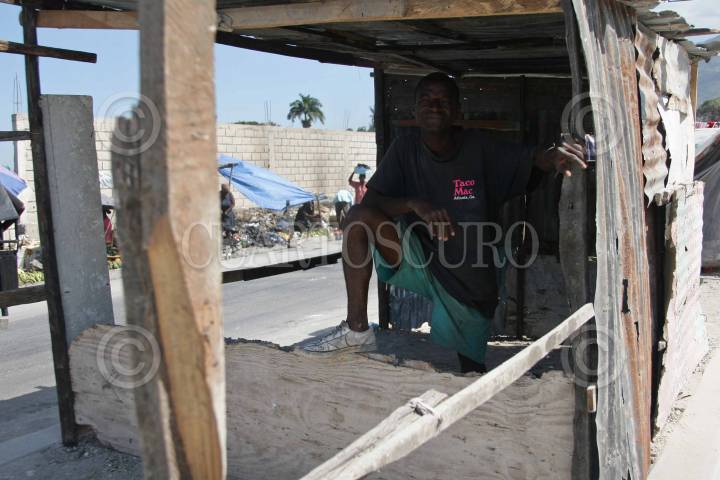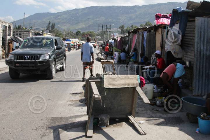 PUERTO PRÍNCIPE, HAITI, 30ENERO2010.- Campamentos de damnificados improvisados sobre un camellón en Puerto Príncipe. Algunos haitianos ya empiezan a construir sus casas con palos y lámina, previendo que éstas serán sus viviendas durante mucho tiempo. FOTO: ISAAC ESQUIVEL/CUARTOSCURO.COM