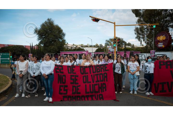 TLAXCALA, TLAXCALA, 22OCTUBRE2024.- Este día, estudiantes de la Escuela Normal Rural Benito Juárez, ubicada en Panotla,Tlaxcala junto con estudiantes de escuelas normales de distintas partes del país realizaron un emotivo mitin y colocaron una cruz en memoria de su compañera Beatriz Rojas, quien falleció hace dos años durante las manifestaciones en el lugar conocido como el Trébol. La conmemoración se llevó a cabo en el mismo lugar donde ocurrió el trágico evento en 2022. Los estudiantes, acompañados por familiares y amigos de Beatriz, recordaron su legado y reivindicaron su lucha por la justicia y la igualdad. FOTO: ALAÍN HERNÁNDEZ/CUARTOSCURO.COM