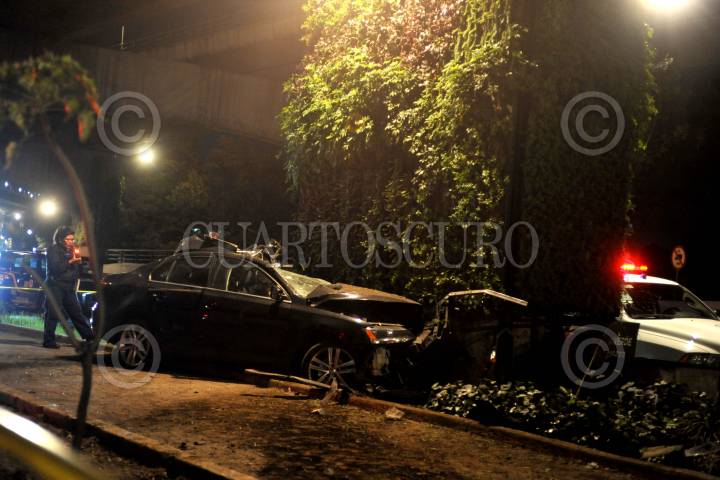 CIUDAD DE MÉXICO., 15JUNIO2019.- Un joven de 25 años perdió la vida al impactar el auto que conducía contra un pilar que soporta segundo piso de periférico a la altura de la calle Molinos en la colonia Plateros. FOTO: LUIS CARBAYO /CUARTOSCURO.COM