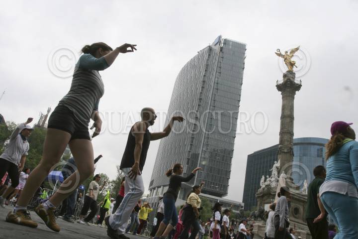 MÉXICO, D.F., 13MAYO2012.- Como parte del quinto aniversario del programa muevete en bici, se realizarton distintas actividades fisicas en el Ángel de la Independencia y Paseo de la reforma FOTO: JUAN PABLO ZAMORA /CUARTOSCURO.COM