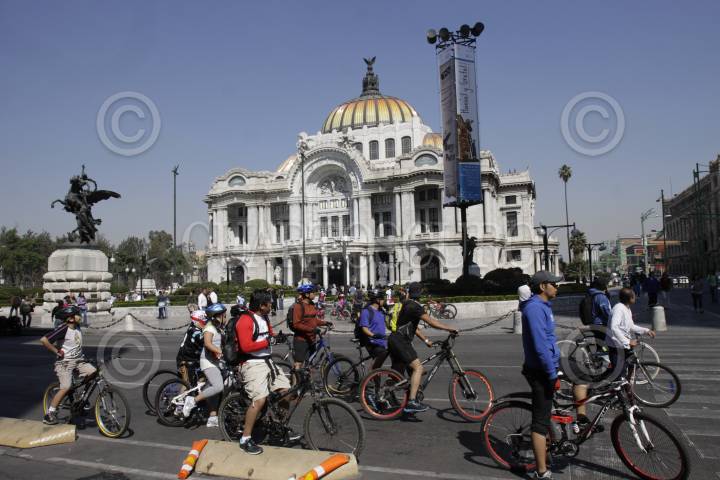 MÉXICO, D.F. 27ENERO2013- Como cada domingo se cerró a la circulación vehicular sobre la avenida Juárez, así como los carriles centrales de Reforma para que la ciudadanía pueda circular en bicicleta a lo que el gobierno local llama ciclotón. FOTO: IVÁN STEPHENS / CUARTOSCURO.COM