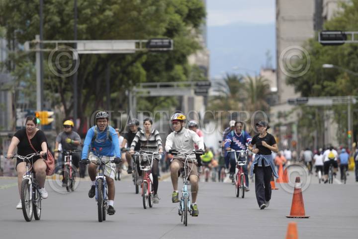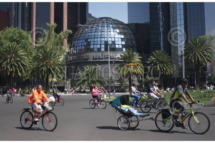 MÉXICO, D.F., 07JULIO2013.- Todos los domingos de 08:00 a 14:00 se cierran la avenidas Reforma y Juárez a la circulación vehicular paraque los ciclistas anden sobre éstas como parte del programa del gobierno local denominado "muévete en bici". FOTO: IVÁN STEPHENS /CUARTOSCURO.COM