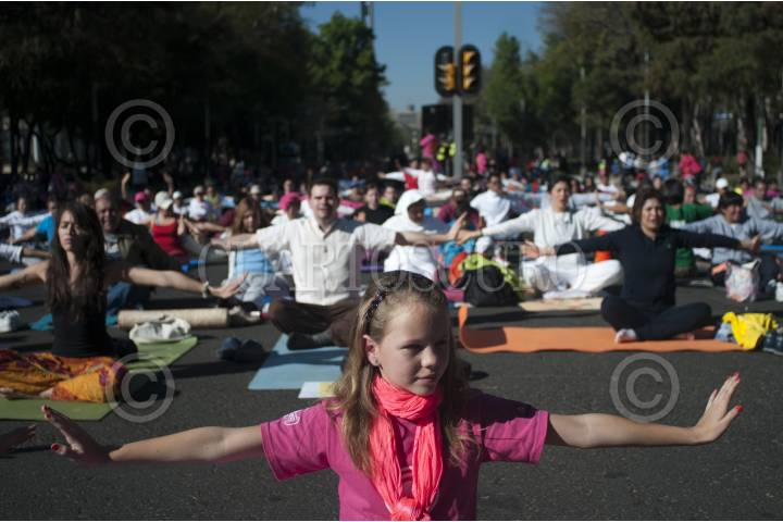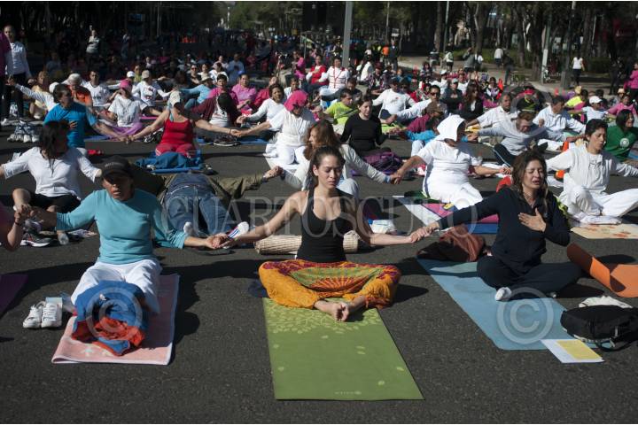 MÉXICO, D.F., 09FEBRERO2014.- Capitalinos acudieron a tomar una clase de yoga al aire libre sobre el paseo de la Reforma como parte de las actividades realizadas dentro del programa capitalino dominical llamado "Muévete en bici". FOTO: IVÁN STEPHENS /CUARTOSCURO.COM