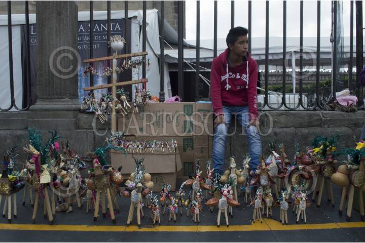 CIUDAD DE MÉXICO, 15JUNIO2017.- A las afueras de la Catedral Metropólitana, vendedores ofrecen mulas y juguetes por la celebración católica del Jueves de Corpus Christi, como parte de la tradición mexicana que data del siglo XVI y fue adoptada por la iglesia católica. El cardenal Norberto Rivera encabezó la procesión por las calles del Centro Histórico. FOTO: SELENE PACHECO /CUARTOSCURO.COM