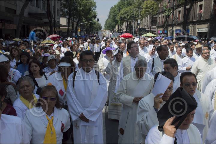 CIUDAD DE MÉXICO, 15JUNIO2017.- El cardenal Norberto Rivera, encabezo la procesión del Jueves de Corpus Christi por las calles del Centro Histórico. Decenas de laícos y religiosos acompañaron al cardenal. FOTO: SELENE PACHECO /CUARTOSCURO.COM