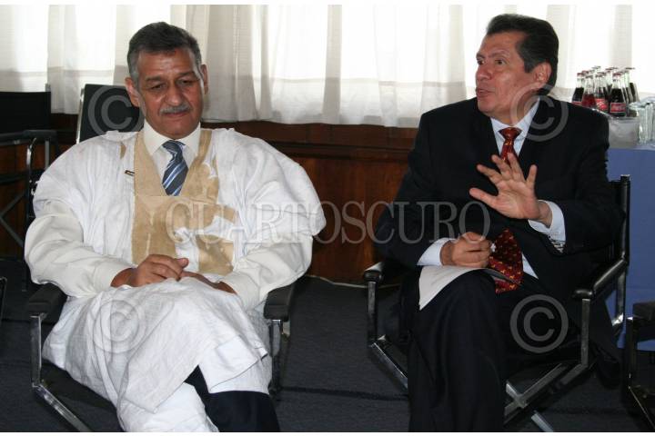 MÉXICO, D.F. 15NOVIEMBRE2006.- Ahmed Mulay Ali Hamadi, embajador de la República Árabe Saharaui Democrática y Victor Hugo Rascón Banada, director de la SOGEM, durante la conferencia de prensa que ofrecieron para anunciar la nueva temporaca teatral que la compañía "La Trouppe" en beneficio de la comunidad de niños saharaui de los campamentos de refugiados. FOTO: PAOLA HIDALGO/CUARTOSCURO.COM