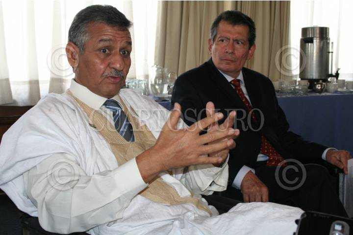 MÉXICO, D.F. 15NOVIEMBRE2006.- Ahmed Mulay Ali Hamadi, embajador de la República Árabe Saharaui Democrática y Victor Hugo Rascón Banada durante la conferencia de prensa que ofrecieron para anunciar la nueva temporaca teatral que la compañía "La Trouppe" en beneficio de la comunidad de niños saharaui de los campamentos de refugiados. FOTO: PAOLA HIDALGO/CUARTOSCURO.COM