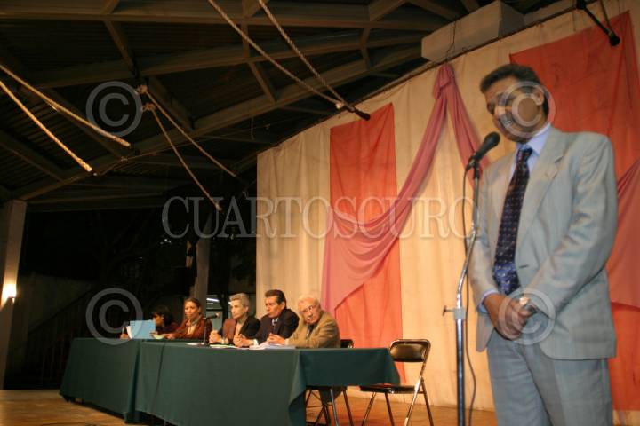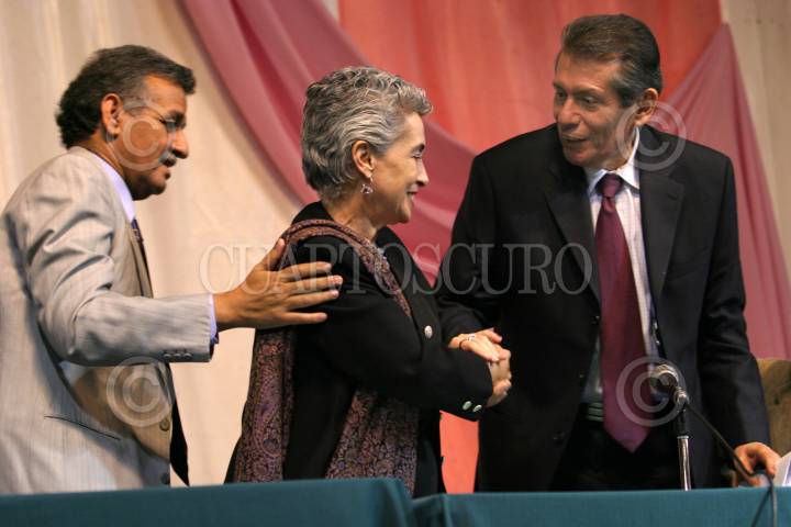 MEXICO, D.F. 19NOVIEMBRE2004.- Ahmed Mulay, embajador de la Repúplica Árabe Saharaui Democrática, Marta de la Lama y Víctor Rascón durante la ceremonia de la constitución de la Asociación de la Amistad con la República Árabe Saharaui Democrática en la casa de la cultura Jesús Romero Flores. FOTO: Nelly Salas/CUARTOSCURO.COM