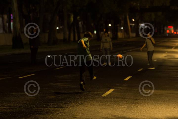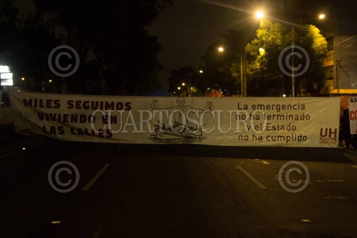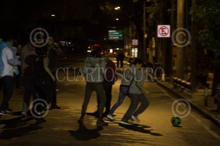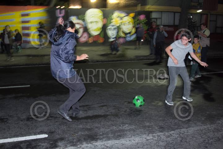 CIUDAD DE MÉXICO, 21JUNIO2018.- Damnificados del Multifamiliar Tlalpan cerraron la vialidad sobre dicha avenida para exigir la solución a sus demandas. Con sillas y pancartas, los inconformes piden que sean destinados los recursos para la reconstrucción y que no están dispuestos a pagar por un préstamo. Por otro lado, los niños de los antiguos habitantes del demolido módulo C1 del complejo, se unieron al partido de fútbol que se disputaba sobre toda la extensión de la calle. FOTO: GALO CAÑAS /CUARTOSCURO.COM