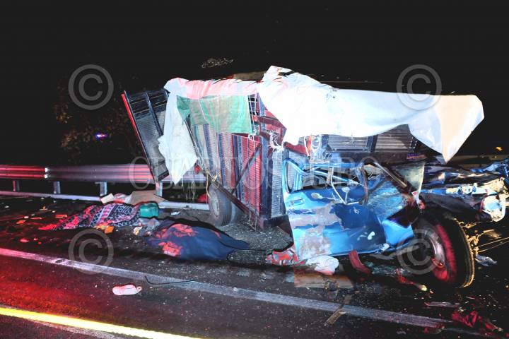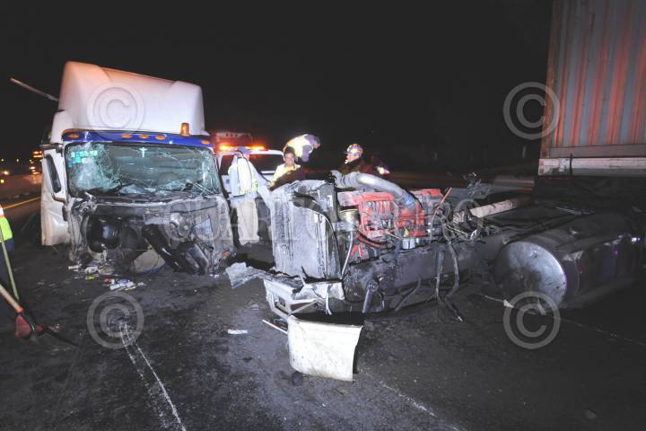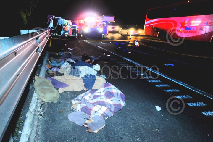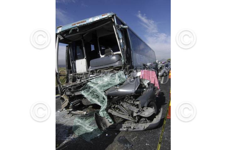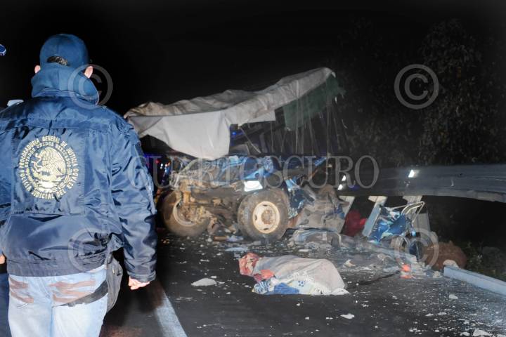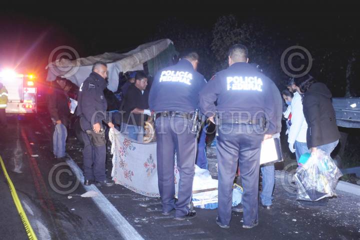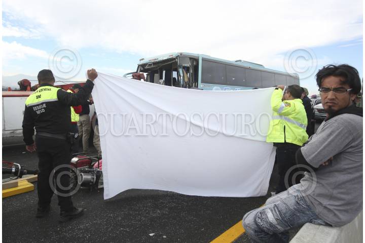 TEXMELUCAN, PUEBLA, 13SEPTIEMBRE2014 7 personas perdieron la vida, entre estos dos menores de edad, tras el accidente múltiple que se registro entre dos autobuses, una camioneta de 31/2 Tns. y un tráiler de doble remolque, en el Km. 74+800 de la Autopista México Puebla, perímetro de Texmelucan Puebla. Dicha carretera, quedo cerrada con dirección Puebla por aproximadamente 5 horas provocando un fuerte caos vial. FOTO: LUIS CARBAYO /CUARTOSCURO.COM