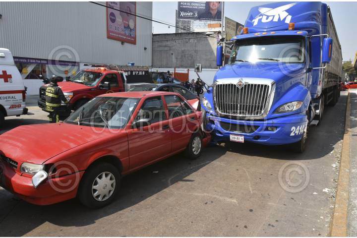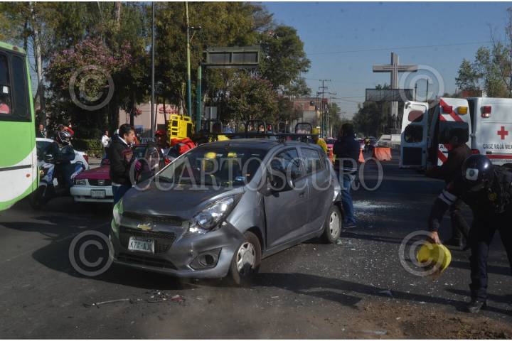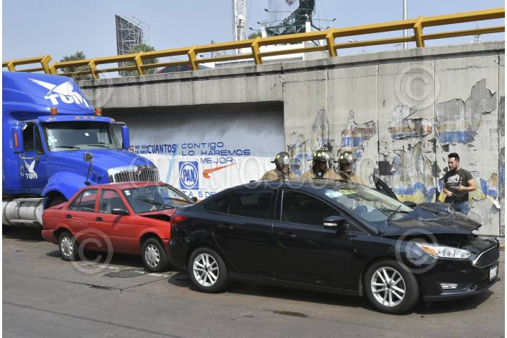 CIUDAD DE MÉXICO, 09MAYO2016.- Un choque múltiple entre un trailer, una camioneta y dos autos se suscitó en la lateral del Circuito Interior y Eulalia Guzmán, en la colonia Industrial Vallejo. FOTO: ARMANDO MONROY /CUARTOSCURO.COM