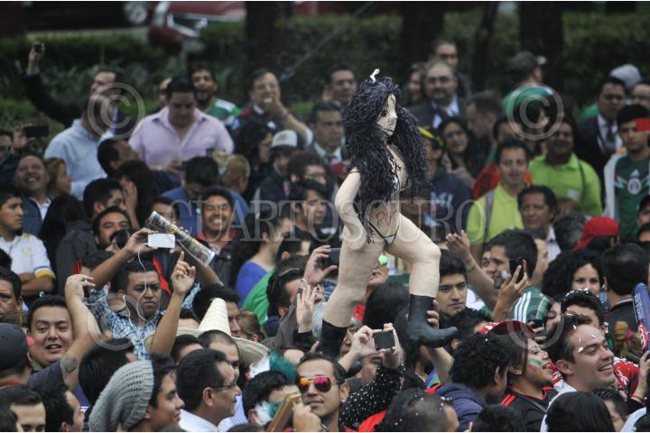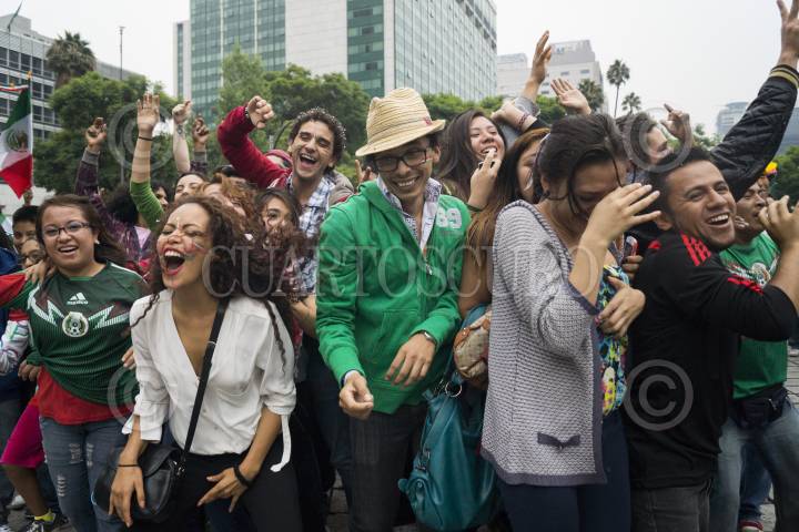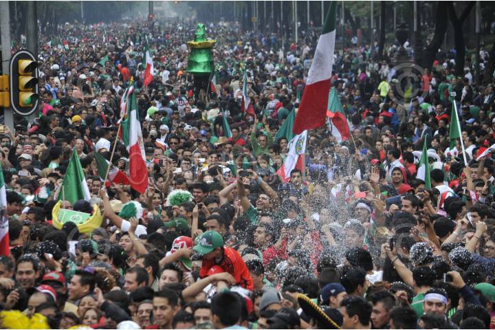 MÉXICO, D.F., 23JUNIO2014.- Miles de personas se dieron cita en el la Glorieta del Ángel de la Independencia sobre Paseo de la Reforma para festejar el triunfo de la Selección Mexicana de Fútbol sobre Croacia y el pase a octavos de final que se disputará contra Holanda el próximo domingo en el Mundial Brasil 2014. FOTO: DIEGO SIMÓN SÁNCHEZ /CUARTOSCURO.COM