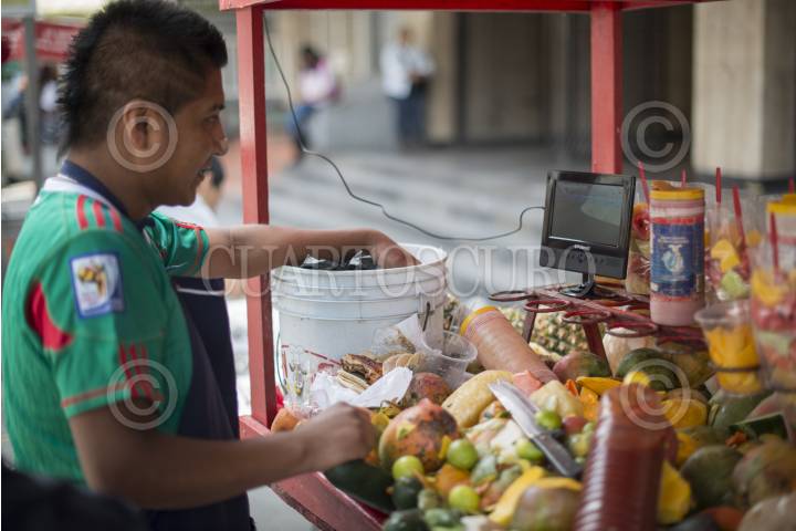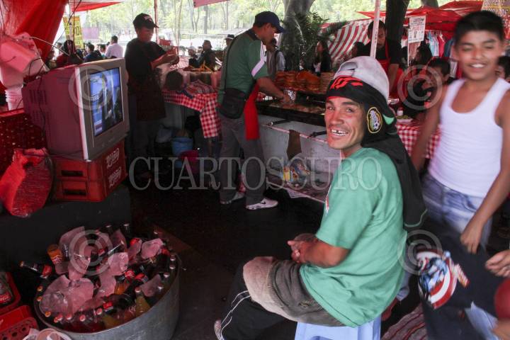 MÉXICO, D.F., 29JUNIO2014.- En sus lugares de trabajo, mercados y puestos ambulantes de la ciudad, aficionados mexicanos observan el partido entre México y Holanda de octavos de final del Mundial de Fútbol Brasil 2014. La selección mexicana perdió por dos a uno y quedó eliminada del mundial nuevamente en el 4to partido. FOTO: ADOLFO VLADIMIR /CUARTOSCURO.COM