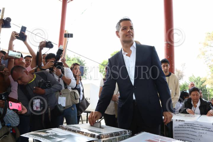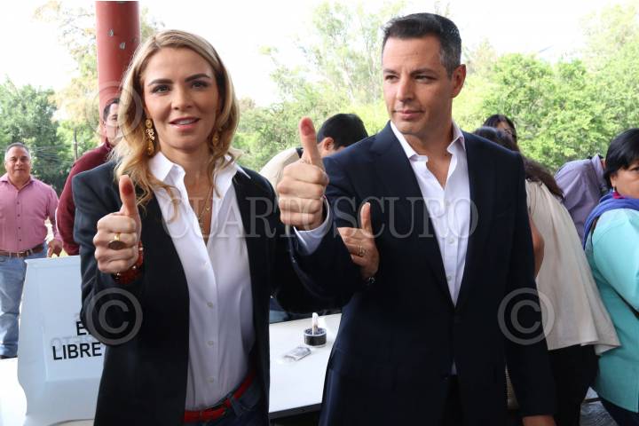 OAXACA , OAXACA, 01JULIO2018.- El gobernador del estado, Alejandro Murat y su esposa, Ivette Morán de Murat presidenta honoraria del Sistema DIF Estatal sufragar on en la casilla del Ejido Guadalupe Victoria en la capital del estado. FOTO: ARTURO PÉREZ ALFONSO/ CUARTOSCURO.COM