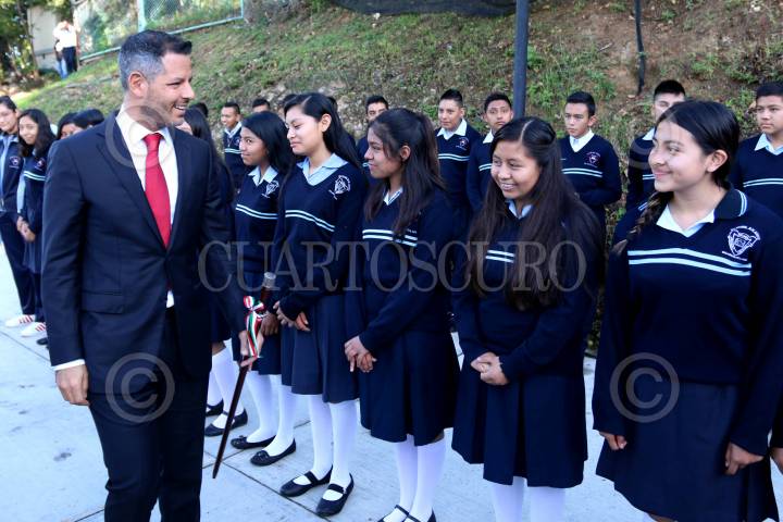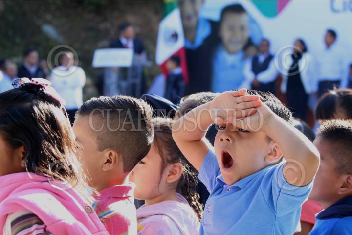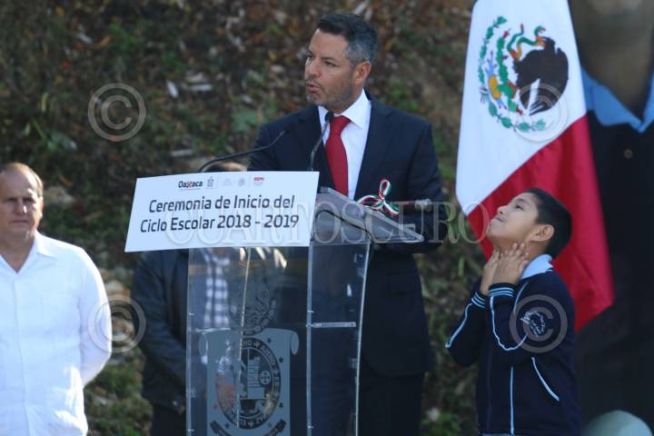 SAN AGUSTÍN ETLA, OAXACA, 20AGOSTO2018.- Este lunes dio inicio el ciclo escolar 2018 - 2019, en Oaxaca la ceremonia de inauguración fue encabezada por el gobernador, Alejandro Murat en el municipio de San Agustín Etla. El funcionario informó que son 13 mil 500 escuelas del nivel básico las que este lunes iniciaron operaciones en la entidad con poco más de un millón de alumnos. FOTO: ARTURO PÉREZ ALFONSO/ CUARTOSCURO.COM
