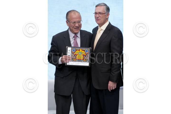 MÉXICO, D.F., 25NOVIEMBRE2011.- El alcalde de Ciudad Juárez, Chihuahua, Héctor Murguía Lardizábal recibió un reconocimiento del proyecto "Limpiemos Nuestro México" que lanzó , Grupo Salinas, Fundación Azteca y la Secretaria del Medio Ambiente y Recursos Naturales, la mañana de hoy y que destaca el apoyo recibido por el Alcalde durante la formación de brigadas de limpieza en el municipio norteño. FOTO: FRANCISCO RODRÍGUEZ/CUARTOSCURO.COM