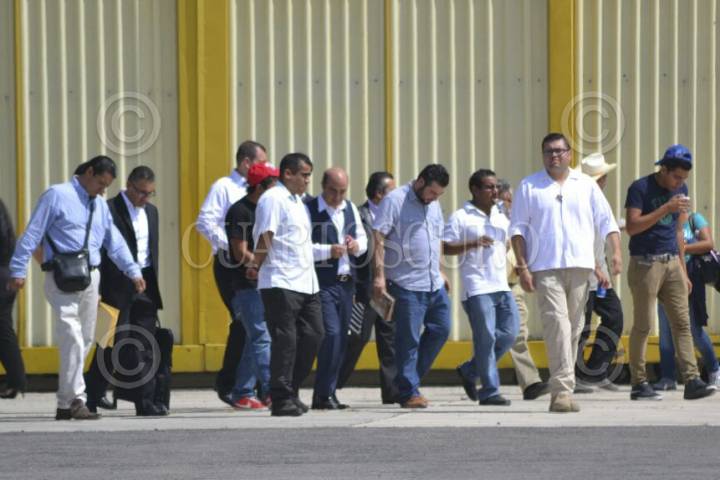 CHILPANCINGO, GUERRERO, 11NOVIEMBRE2014.- Arribaron al aeropuerto de Chilpancingo Miguel Ángel Osorio Chong, Secretario de Gobernación y Jesús Murillo Karam, procurador de la república para reunirse con familiares de los normalistas desaparecidos. FOTO: SAÚL LÓPEZ /CUARTOSCURO.COM
