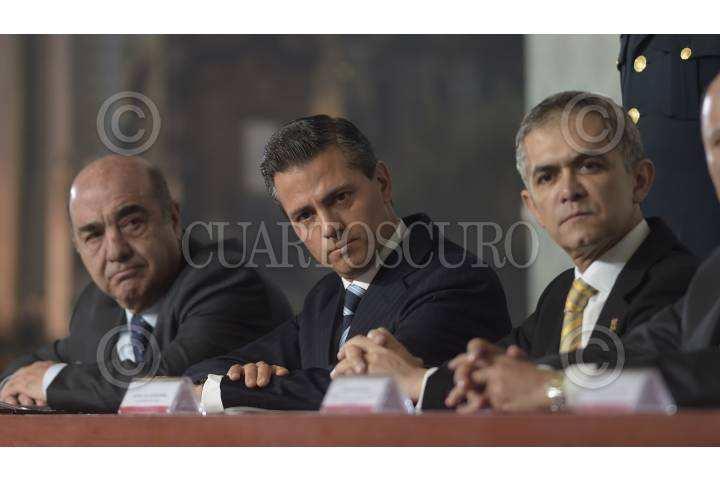 MÉXICO, D.F., 20NOVIEMBRE2014.- Enrique Peña Nieto, presidente de México, Jeús Murillo Karam, titular de la PGR y Miguel Ángel Mancera, jefe de gobierno del D.F. inauguraron el Encuentro Nacional de Procuración y Administración de Justicia en la residencia oficial de los pinos. FOTO: PRESIDENCIA /CUARTOSCURO.COM