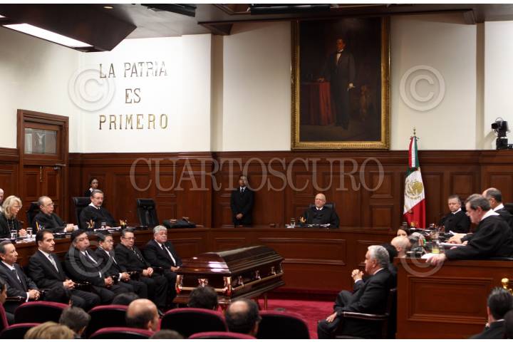 MÉXICO, D.F., 23SEPTIEMBRE2010.- En sesión solemne, la Suprema Corte de Justicia de la Nación (SCJN) rindió un homenaje póstumo de cuerpo presente al ministro José de Jesús Gudiño Pelayo quien murió de un infarto el domingo pasado mientras se encontraba en Londres. FOTO: RODOLFO ANGULO/CUARTOSCURO.COM