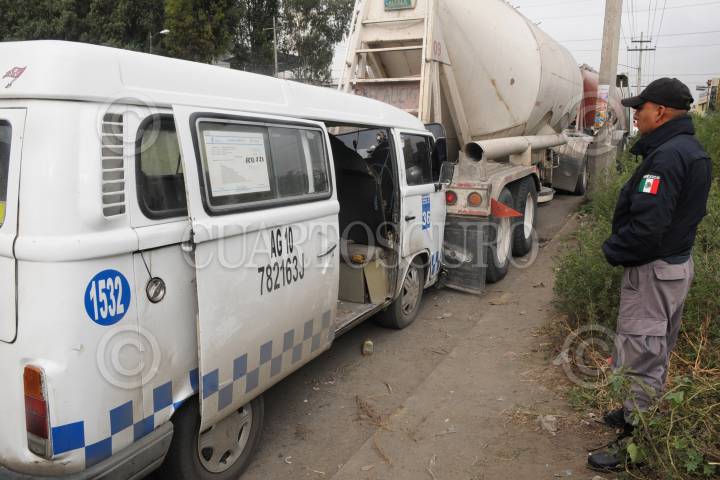 LOS REYES LA PAZ, ESTADO DE MÉXICO, 24SEPTIEMBRE2010.- Una persona murió al impactarse la unidad de transporte publico tipo combi con placas 782-163-J, en la que viajaba como pasajero contra la parte trasera de un trailer que se encontraba estacionado en el kilómetro 21 de la carretera Federal México Puebla en la colonia La Cruz. FOTO: LUIS CARBAYO/CUARTOSCURO.COM
