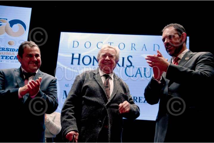 ZACATECAS, ZACATECAS, 25OCTUBRE2018.- La Universidad Autónoma de Zacatecas (UAZ), otorgó la distinción Doctor Honoris Causa al maestro Manuel Felguérez Barra, por representar una de las figuras más relevantes del arte contemporáneo en México y el m