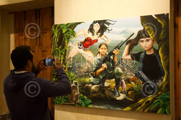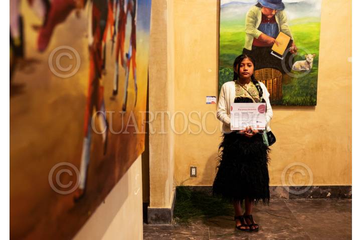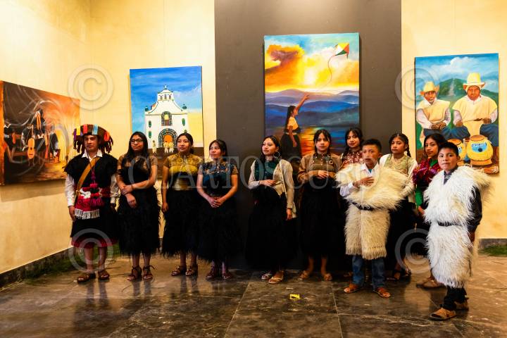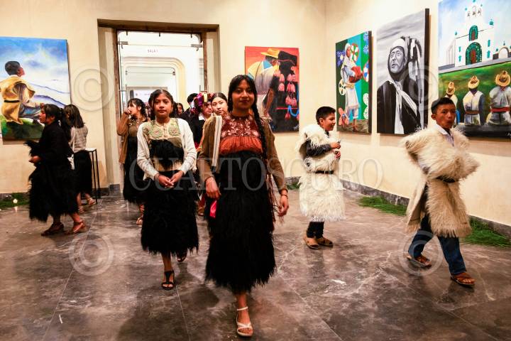 SAN CRISTÓBAL DE LAS CASAS, CHIAPAS, 05JULIO2024.- Se llevó a cabo en el Musac ubicado en el centro histórico de la ciudad, la inauguración de la exposición "Lekil Kuxlejal" a cargo de jóvenes artistas originarios de San Juan Chamula y Tenejapa estudiantes de artes en el Centro Cultural Independiente ArTex. Las obras de gran formato quedarán exhibidas durante un mes en la sala de exposiciones número dos de este recinto. FOTO: ISABEL MATEOS /CUARTOSCURO.COM