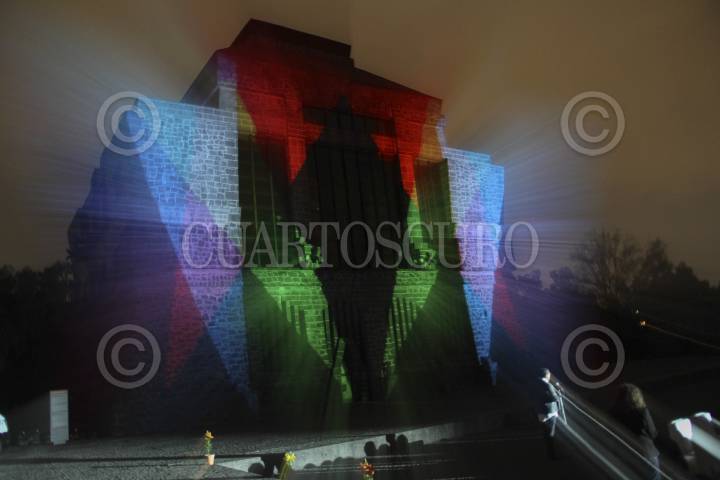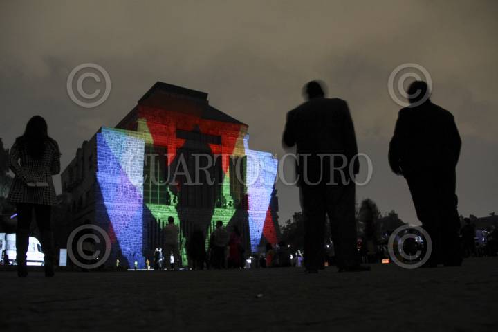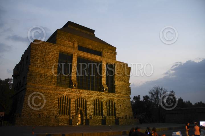 MÉXICO, D.F., 15OCTUBRE2013.- Con una proyección del nuevo logotipo, El Museo Diego Rivera-Anahuacalli presentó la nueva identidad del recinto. La imagen diseñada por Ogilvy & Mather, fue inspirada en la arquitectura del Anahuacalli y algunos colores de la paleta usada por Rivera, así como el manejo de la luz en que se basa el museo. FOTO: ADOLFO VLADIMIR /CUARTOSCURO.COM