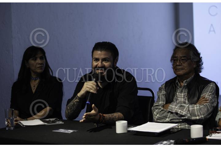 CIUDAD DE MÉXICO, 22AGOSTO2024.- Pedro Valtierra, director de la revista Cuartoscuro, acompañado de los fotógrafos Sandra Hordóñez, Carlos Alvar Gonzalez presentaron la revista 181 de Cuartoscuro en el Museo Archivo de la fotografía. FOTO: ANDREA MURCIA /CUARTOSCURO.COM