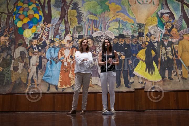CIUDAD DE MÉXICO, 08JUNIO2019.- La curadora Nuria Sadurni y María del Sol Argüelles, encargada del Museo Murales Diego Rivera, encabezaron la apertura de la Exposición didáctica "Juegos, sueños y una tardeada en la Alameda Central", la cual abarca la biografía del pintor Diego Rivera y la historia y técnica del mural: Sueño de una tarde dominical en la Alameda Central. Estará abierta a partir del 8 de junio hasta el 8 de septiembre en el Museo de Mural Diego Rivera. FOTO: GRACIELA LÓPEZ /CUARTOSCURO.COM