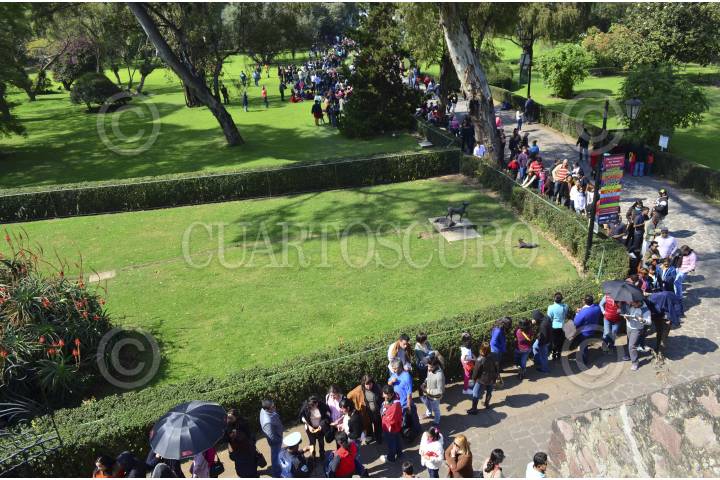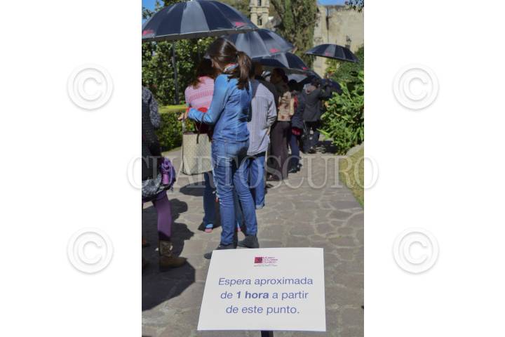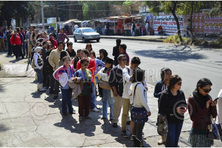 MÉXICO, DF., 19ENERO2014.- Filas de un promedio de espera de 6 horas y media custodian la entrada del Museo Dolores Olmedo, pues hoy es el último día de la exposición del Musée de l’Orangerie, compuesta por 30 piezas representativas del período impresionista y otras vanguardias francesas. La muestra es una de las más exitosas en la historia del museo. Desde las 5 A.M. empezaron a llegar los primeros visitantes, quienes apartaron su lugar a la puerta del recinto cultural. El museo dictaminó que no habrá prórroga pues el desmontaje de las obras está programado para mañana. La fila para ingresar a la taquilla llegaba a la altura del deportivo Cruz Azul, lo que representa al menos medio kilómetro de longitud. FOTO: MARÍA JOSÉ MARTÍNEZ /CUARTOSCURO.COM