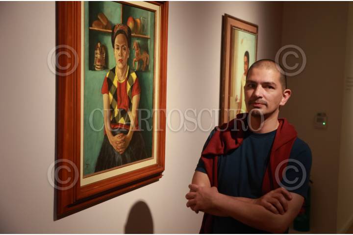 CIUDAD DE MÉXICO, 07FEBRERO2025. El curador Raúl Cano Monroy durante el recorrido por la exposición pictórica “Bajo el mismo Mexico, Las colecciones Kaluz y Juan Coronel Rivera”. Dos colecciones privadas que reúnen a más de 90 obras y 86 artistas que desarrollaron carreras paralelas a las de los grandes maestros del arte mexicano. La exposición estará abierta a partir del 8 de febrero a septiembre en el Museo Kaluz. FOTO: EDGAR NEGRETE LIRA/CUARTOSCURO.COM