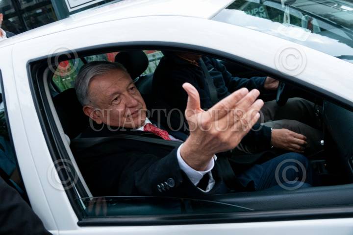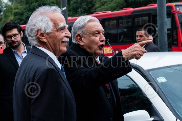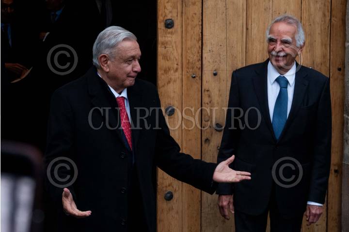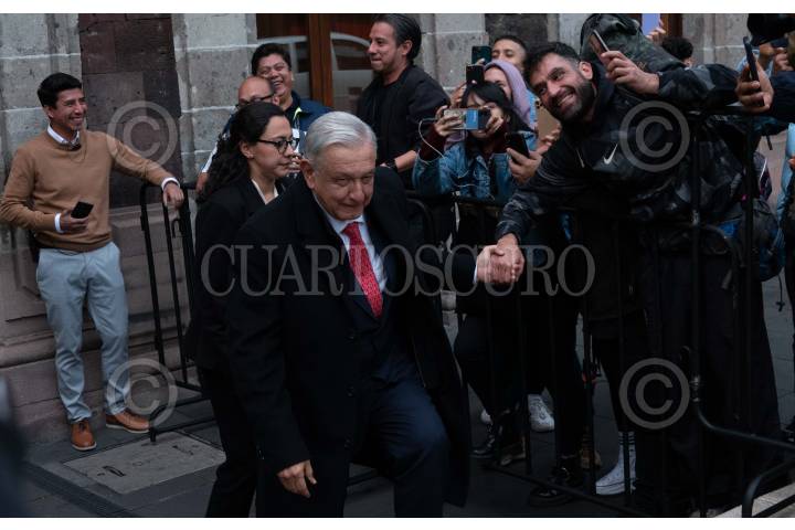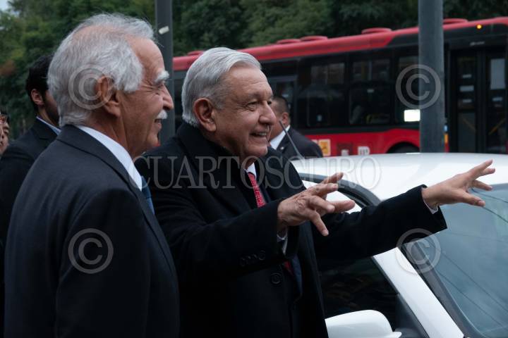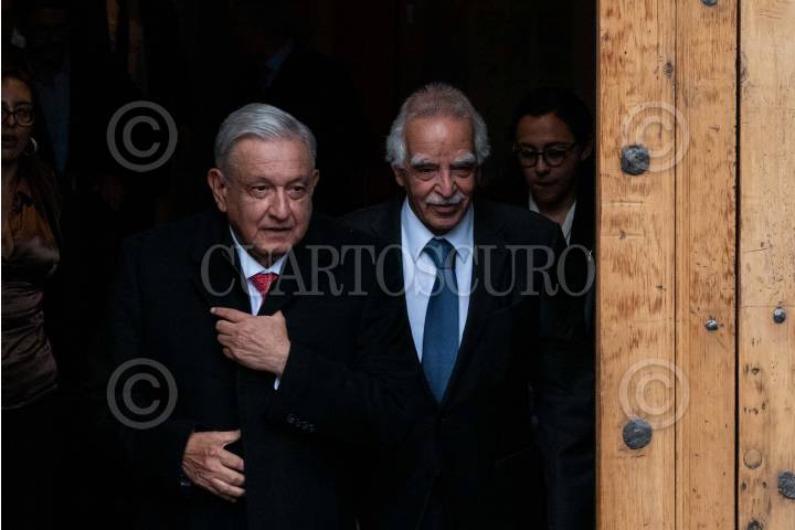 CIUDAD DE MÉXICO, 07DICIEMBRE2023.- Andrés Manuel López Obrador, presidente de México, salió en compañía de Rolando Vega Saenz, presidente del Consejo Mexicano de Negocios, tras reunirse con empresarios en el Museo Kaluz. FOTO: GALO CAÑAS/CUARTOSCURO.COM