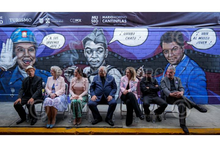 CIUDAD DE MÉXICO, 12AGOSTO2024.-Miguel Torruco Marqués, Secretario de Turismo del Gobierno de México, y Carlos Cordera Frazen, director del museo “Mario Moreno Cautiflas”, develaron la placa conmemorativa en honor a Mario Moreno Cantinflas en Santa María la Redonda, donde el cómico nació. Esta placa fue develada en el marco de la inauguración del Museo Mario Moreno Cantinflas. Este espacio, abierto en el marco del natalicio de Mario Moreno Cantinflas, preserva su legado y tiene como objetivo acercar a las nuevas generaciones al ícono de la cultura popular y de la industria cinematográfica nacional. FOTO: ALICE MORITZ /CUARTOSCURO.COM