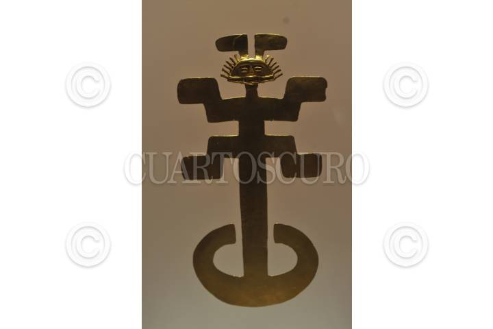 MÉXICO, D.F., 17OCTUBRE2012.- La muestra “Oro, arte prehispánico de Colombia” que se presenta en el Museo Nacional de las Culturas, en el Centro Histórico de la ciudad está integrada por un total de 253 piezas de uso ornamental y religioso provenientes del Museo del Oro del Banco de la República de Colombia. FOTO: GABINO ACEVEDO /CUARTOSCURO.COM